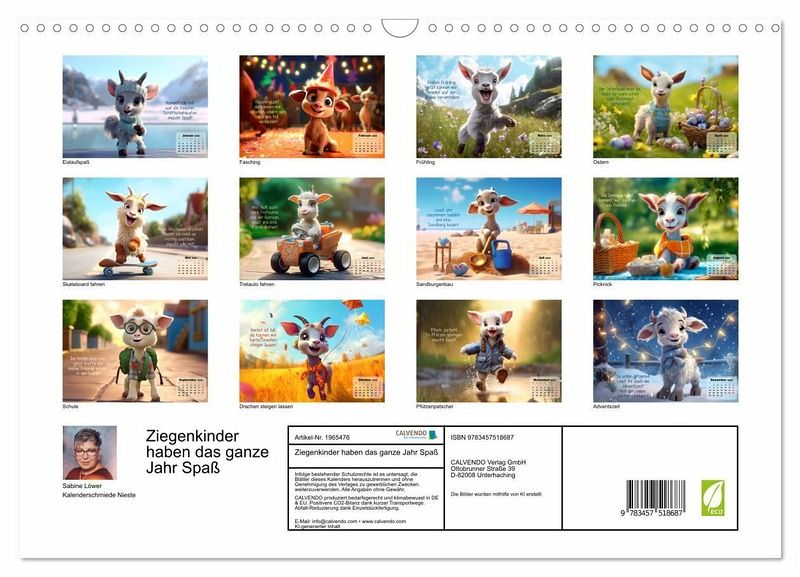QUALITÄT - Hochwertiger Fotokalender mit 12 wunderschönen Motiven auf lichtbeständigem Bilderdruckpapier, robuste Spiralbindung mit Aufhängebügel.NACHHALTIG - deutliche Abfallreduzierung durch bedarfsgerechte Einzelstückfertigung, umweltfreundliches FSC-zertifiziertes Papier, Produktion in Deutschland, klimabewusste Logistik.PERFEKTES GESCHENK - Kalender für Freunde und Familie, für Kinder und Erwachsene, jung und alt, zu Weihnachten, Geburtstag oder zwischendurch.VIELFALT - Bildkalender in verschiedenen Formaten, z.B. DIN A5, DIN A4, DIN A3 sowie DIN A2. Ob Naturmotiv, Gemälde oder Fotos, ideal für ein persönliches Wohlfühlambiente.Lustige Zicklein laden zum Spielen ein von Autor(in): Sabine Löwer