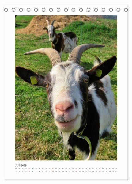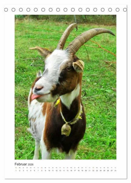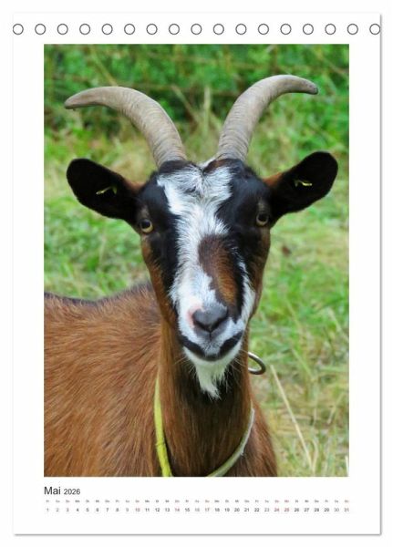 Ziegen, so sagt man, sind neugierig, unberechenbar, wählerisch und echte Kletterkünstler. Dabei sind sie aber auch sehr gesellig, Herdentiere eben. Unterschiedliche Charaktere wurden eingefangen in Portraitfotos und mit einem passenden Spruch versehen. Nicht nur eingefleischten Ziegenfreunden werden sie jeden Monat Freude bereiten.
