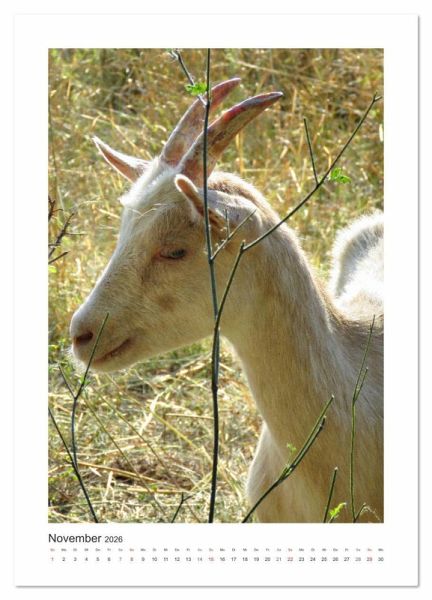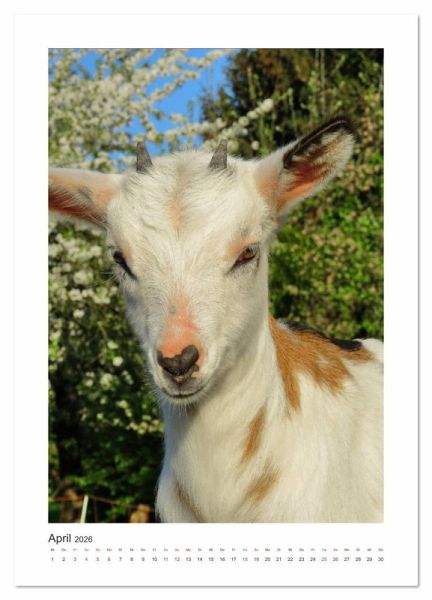 Ziegen, so sagt man, sind neugierig, unberechenbar, wählerisch und echte Kletterkünstler. Dabei sind sie aber auch sehr gesellig, Herdentiere eben. Unterschiedliche Charaktere wurden eingefangen in Portraitfotos und mit einem passenden Spruch versehen. Nicht nur eingefleischten Ziegenfreunden werden sie jeden Monat Freude bereiten.