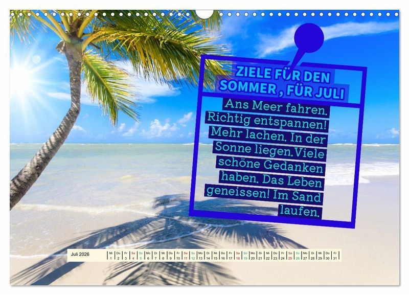 Ein Ziel ist ein Zustand, Ereignis oder Ort, den wir erreichen möchten. Sicher hast auch Du Ziele. Hier eine kleine Auswahl, Monat für Monat, eine Motivation mehr aus Deinem Leben, Alltag zu machen. Die Listen sind frei erweiterbar, sie dienen nur als Anregung. In diesem Sinne...auf zu neuen Ufern.