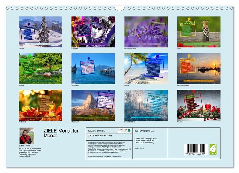 QUALITÄT - Hochwertiger Fotokalender mit 12 wunderschönen Motiven auf lichtbeständigem Bilderdruckpapier, robuste Spiralbindung mit Aufhängebügel.NACHHALTIG - deutliche Abfallreduzierung durch bedarfsgerechte Einzelstückfertigung, umweltfreundliches FSC-zertifiziertes Papier, Produktion in Deutschland, klimabewusste Logistik.PERFEKTES GESCHENK - Kalender für Freunde und Familie, für Kinder und Erwachsene, jung und alt, zu Weihnachten, Geburtstag oder zwischendurch.VIELFALT - Bildkalender in verschiedenen Formaten, z.B. DIN A5, DIN A4, DIN A3 sowie DIN A2. Ob Naturmotiv, Gemälde oder Fotos, ideal für ein persönliches Wohlfühlambiente.Motivation für jeden Monat " To do Liste" von Autor(in): Susan Michel
