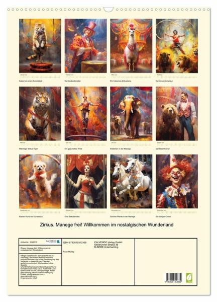 QUALITÄT - Hochwertiger Fotokalender mit 12 wunderschönen Motiven auf lichtbeständigem Bilderdruckpapier, robuste Spiralbindung mit Aufhängebügel.NACHHALTIG - deutliche Abfallreduzierung durch bedarfsgerechte Einzelstückfertigung, umweltfreundliches FSC-zertifiziertes Papier, Produktion in Deutschland, klimabewusste Logistik.PERFEKTES GESCHENK - Kalender für Freunde und Familie, für Kinder und Erwachsene, jung und alt, zu Weihnachten, Geburtstag oder zwischendurch.VIELFALT - Bildkalender in verschiedenen Formaten, z.B. DIN A5, DIN A4, DIN A3 sowie DIN A2. Ob Naturmotiv, Gemälde oder Fotos, ideal für ein persönliches Wohlfühlambiente.Schöne Vintage-Illustrationen aus der bunten Zirkuswelt von Autor(in): Rose Hurley