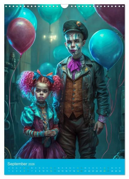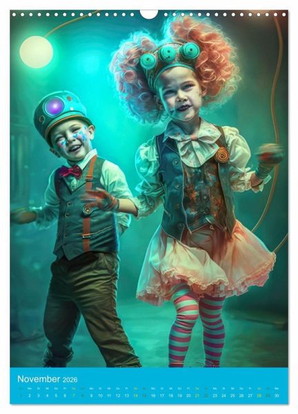 Zauberhafte Augenblicke eingefangen in einer magischen Zirkuswelt. Artisten in imposanter Kleidung, fantasiereich und farbenfroh. Ein wenig Karneval, ein wenig Schabernack und Rampenlicht, treten Sie ein in die mit Hilfe der KI erstellte Welt der Zirkusleute. Der "Zirkuswelt mit Steampunk"-Kalender ist ein wahrer Augenschmaus und eignet sich perfekt als Geschenk für alle Zirkusfans und Liebhaber des Außergewöhnlichen. Jeder Monat des Jahres wird durch ein neues und einzigartiges Porträt zum Highlight, das Ihre Wände schmücken wird.