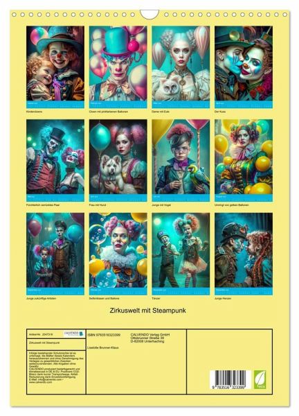 Zögern Sie nicht länger und sichern Sie sich noch heute Ihren eigenen "Zirkuswelt mit Steampunk"-Kalender. Jeder Tag wird zu einem Fest der Sinne, wenn Sie die wundervollen Persönlichkeiten der Zirkuswelt hautnah erleben.