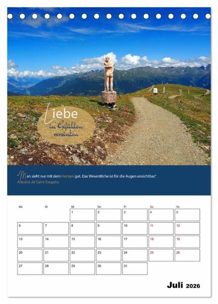 Dieser liebevoll zusammen gestellte Kalender mit wunderschönen europäischen Landschaftsfotografien und inspirierenden Sprüchen ist ein perfektes Geschenk für Ihre Liebsten oder beschenken Sie sich selbst.