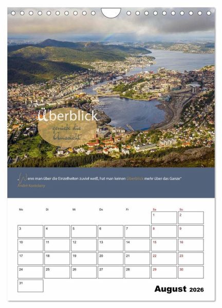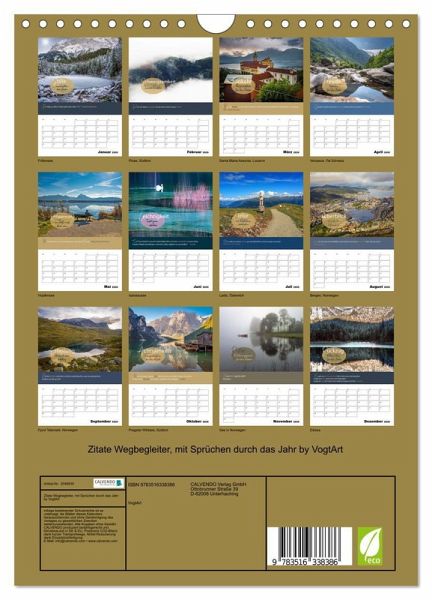 QUALITÄT - Hochwertiger Fotokalender mit 12 wunderschönen Motiven auf lichtbeständigem Bilderdruckpapier, robuste Spiralbindung mit Aufhängebügel.NACHHALTIG - deutliche Abfallreduzierung durch bedarfsgerechte Einzelstückfertigung, umweltfreundliches FSC-zertifiziertes Papier, Produktion in Deutschland, klimabewusste Logistik.PERFEKTES GESCHENK - Kalender für Freunde und Familie, für Kinder und Erwachsene, jung und alt, zu Weihnachten, Geburtstag oder zwischendurch.VIELFALT - Bildkalender in verschiedenen Formaten, z.B. DIN A5, DIN A4, DIN A3 sowie DIN A2. Ob Naturmotiv, Gemälde oder Fotos, ideal für ein persönliches Wohlfühlambiente.mit wegweisenden Zitaten durch`s Jahr von Autor(in): VogtArt