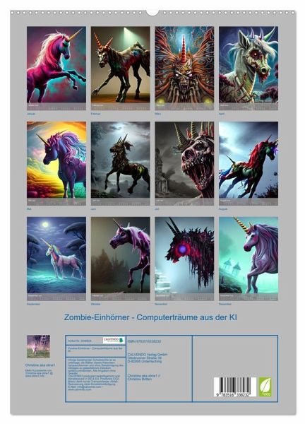 PREMIUM-LINIE - Brillanter Fotokalender mit 12 wunderschönen Motiven, Kunstdruck in Hochglanz in Museumsqualität.QUALITÄT - edle Materialien, stabile Rückwand mit 2 innovativen Einstecktaschen für eine optimale Präsentation an der Wand.NACHHALTIG - deutliche Abfallreduzierung durch bedarfsgerechte Einzelstückfertigung, umweltfreundliches FSC-zertifiziertes Papier, Produktion in Deutschland, klimabewusste Logistik.PERFEKTES GESCHENK - Kalender für Freunde und Familie, für Kinder und Erwachsene, jung und alt, zu Weihnachten, Geburtstag oder zwischendurch.Gruselige Einhörner aus der KI von Autor(in): Christine aka stine1
