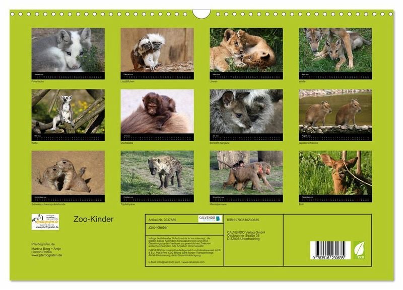 QUALITÄT - Hochwertiger Fotokalender mit 12 wunderschönen Motiven auf lichtbeständigem Bilderdruckpapier, robuste Spiralbindung mit Aufhängebügel.NACHHALTIG - deutliche Abfallreduzierung durch bedarfsgerechte Einzelstückfertigung, umweltfreundliches FSC-zertifiziertes Papier, Produktion in Deutschland, klimabewusste Logistik.PERFEKTES GESCHENK - Kalender für Freunde und Familie, für Kinder und Erwachsene, jung und alt, zu Weihnachten, Geburtstag oder zwischendurch.VIELFALT - Bildkalender in verschiedenen Formaten, z.B. DIN A5, DIN A4, DIN A3 sowie DIN A2. Ob Naturmotiv, Gemälde oder Fotos, ideal für ein persönliches Wohlfühlambiente.Putzige Tierbabys im Zoo von Autor(in): Antje Lindert-Rottke