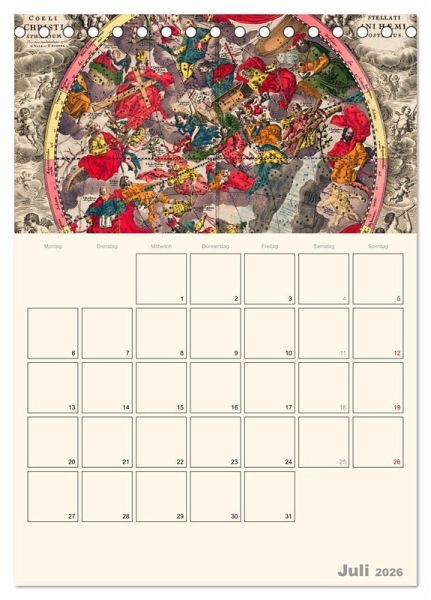 Die Faszination des Sternenhimmels zieht uns seit je in ihren Bann und führte 1660 zur Veröffentlichung eines der schönsten Sternatlanten: der Harmonia Macrocosmica von Andres Cellarius. Die detailreichen, noch figürlich dargestellten Sternbilder versinnbildlichen in bezaubernder Weise den Zusammenhang zwischen Mythologie und moderner Astronomie. Der Kalender präsentiert 12 Ausschnitte der Kupfertafeln - Weltbilder und Sternenkarten - der Harmonia Macrocosmica mit Hintergundinformationen zu den Abbildungen. Mit Planerfunktion! Planen Sie Ihre Termine und Anlässe umramt vom Zauber der Sternbilder. Eine besondere Geschenkidee für Amateurastronomen, Astrologen, Sternenhimmelgucker und Kunstliebhaber. Oder schenken Sie ihn sich doch einfach selbst!