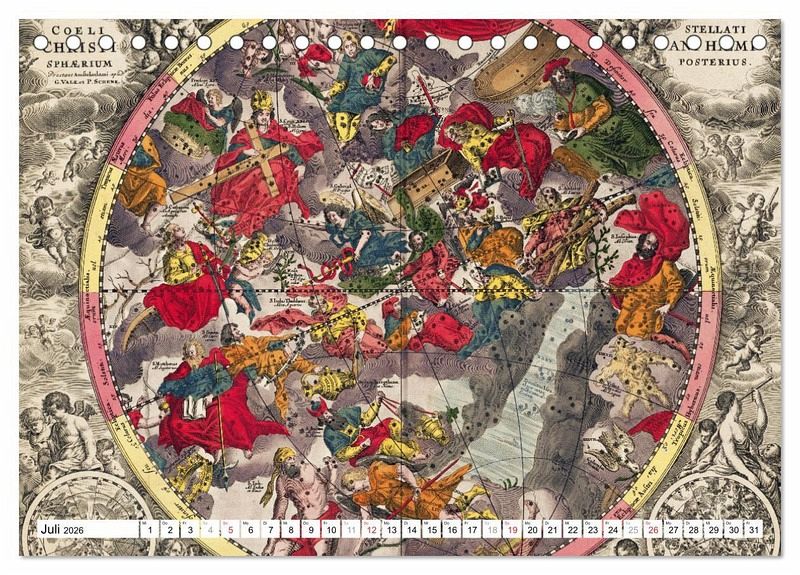 Die Faszination des Sternenhimmels zieht uns seit je in ihren Bann und führte 1660 zur Veröffentlichung eines der schönsten Sternatlanten: der Harmonia Macrocosmica von Andres Cellarius. Die detailreichen, noch figürlich dargestellten Sternbilder versinnbildlichen in bezaubernder Weise den Zusammenhang zwischen Mythologie und moderner Astronomie. Der Kalender präsentiert großformatig 12 Ausschnitte der Kupfertafeln - Weltbilder und Sternenkarten - der Harmonia Macrocosmica mit Hintergundinformationen zu den Abbildungen. Lassen Sie sich entführen vom Zauber der Sternbilder. Eine besondere Geschenkidee für Amateurastronomen, Astrologen, Sternenhimmelgucker und Kunstliebhaber. Oder schenken Sie ihn sich doch einfach selbst!