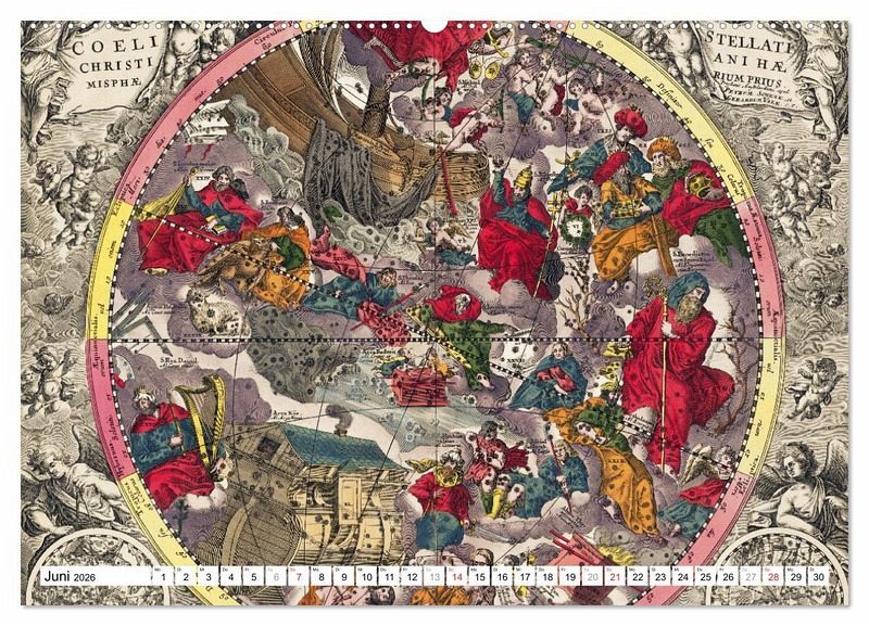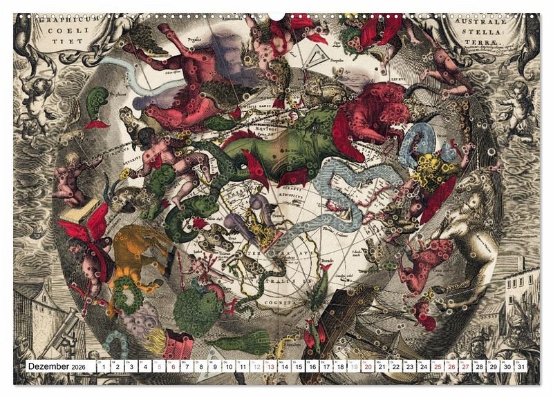 Die Faszination des Sternenhimmels zieht uns seit je in ihren Bann und führte 1660 zur Veröffentlichung eines der schönsten Sternatlanten: der Harmonia Macrocosmica von Andres Cellarius. Die detailreichen, noch figürlich dargestellten Sternbilder versinnbildlichen in bezaubernder Weise den Zusammenhang zwischen Mythologie und moderner Astronomie. Der Kalender präsentiert großformatig 12 Ausschnitte der Kupfertafeln - Weltbilder und Sternenkarten - der Harmonia Macrocosmica mit Hintergundinformationen zu den Abbildungen. Lassen Sie sich entführen vom Zauber der Sternbilder. Eine besondere Geschenkidee für Amateurastronomen, Astrologen, Sternenhimmelgucker und Kunstliebhaber. Oder schenken Sie ihn sich doch einfach selbst!
