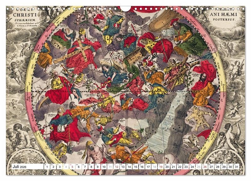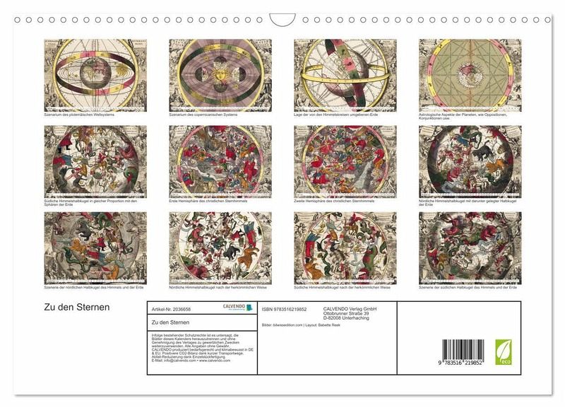 Die Faszination des Sternenhimmels zieht uns seit je in ihren Bann und führte 1660 zur Veröffentlichung eines der schönsten Sternatlanten: der Harmonia Macrocosmica von Andres Cellarius. Die detailreichen, noch figürlich dargestellten Sternbilder versinnbildlichen in bezaubernder Weise den Zusammenhang zwischen Mythologie und moderner Astronomie. Der Kalender präsentiert großformatig 12 Ausschnitte der Kupfertafeln - Weltbilder und Sternenkarten - der Harmonia Macrocosmica mit Hintergundinformationen zu den Abbildungen. Lassen Sie sich entführen vom Zauber der Sternbilder. Eine besondere Geschenkidee für Amateurastronomen, Astrologen, Sternenhimmelgucker und Kunstliebhaber. Oder schenken Sie ihn sich doch einfach selbst!