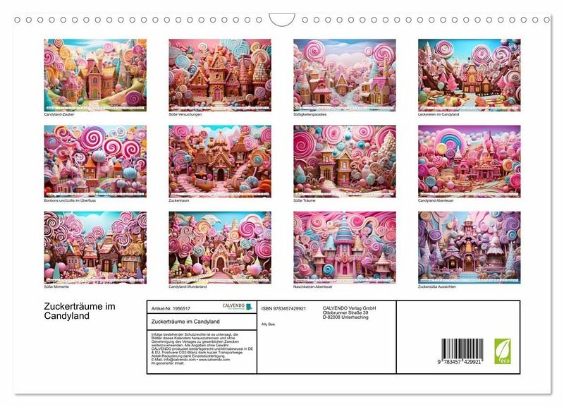 Tauche ein in eine Welt voller süßer Versuchungen mit unserem KI-Candyland-Kalender! Jeder Monat präsentiert kunterbunte Motive, die direkt aus einem Zuckertraum zu stammen scheinen. Von leckeren Bonbons über schmackhafte Lollis bis hin zu verlockenden Schokoladenhäuschen - dieses Kalenderparadies lässt Naschkatzenherzen höherschlagen! Perfekt für Kinder, die von bunten Leckereien träumen, oder für alle, die gerne Süßigkeiten naschen und sich von der süßen Seite des Lebens inspirieren lassen möchten. Hol dir jetzt deinen Candyland-Kalender und genieße ein Jahr voller süßer…mehr