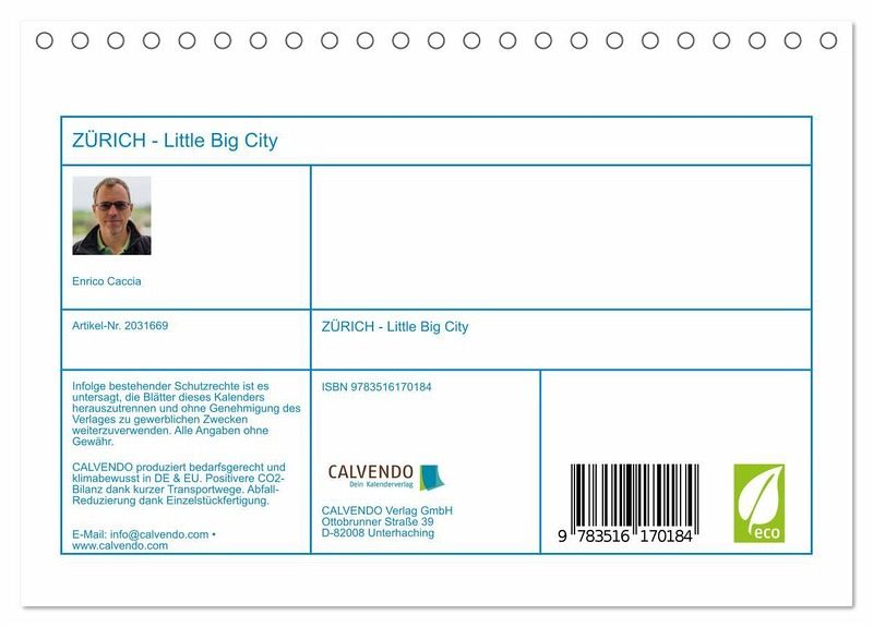 QUALITÄT - Hochwertiger Fotokalender mit 12 wunderschönen Motiven auf lichtbeständigem Bilderdruckpapier, robuste Spiralbindung.NACHHALTIG - deutliche Abfallreduzierung durch bedarfsgerechte Einzelstückfertigung, umweltfreundliches FSC-zertifiziertes Papier, Produktion in Deutschland, klimabewusste Logistik.PERFEKTES GESCHENK - Kalender für Freunde und Familie, für Kinder und Erwachsene, jung und alt, zu Weihnachten, Geburtstag oder zwischendurch.VIELFALT - Bildkalender in verschiedenen Formaten, z.B. DIN A5, DIN A4, DIN A3 sowie DIN A2. Ob Naturmotiv, Gemälde oder Fotos, ideal für ein persönliches Wohlfühlambiente.Zürich - klein aber fein von Autor(in): Enrico Caccia