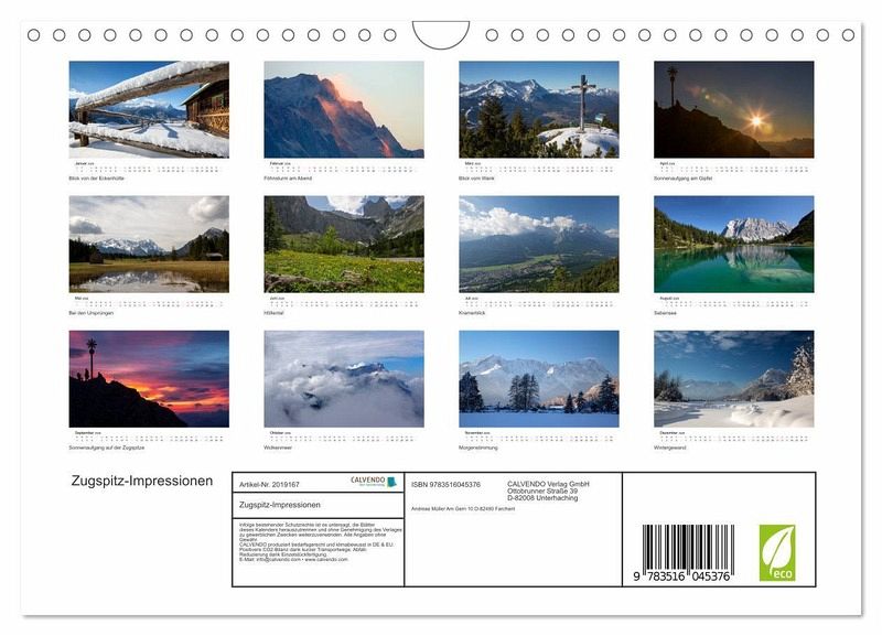 QUALITÄT - Hochwertiger Fotokalender mit 12 wunderschönen Motiven auf lichtbeständigem Bilderdruckpapier, robuste Spiralbindung mit Aufhängebügel.NACHHALTIG - deutliche Abfallreduzierung durch bedarfsgerechte Einzelstückfertigung, umweltfreundliches FSC-zertifiziertes Papier, Produktion in Deutschland, klimabewusste Logistik.PERFEKTES GESCHENK - Kalender für Freunde und Familie, für Kinder und Erwachsene, jung und alt, zu Weihnachten, Geburtstag oder zwischendurch.VIELFALT - Bildkalender in verschiedenen Formaten, z.B. DIN A5, DIN A4, DIN A3 sowie DIN A2. Ob Naturmotiv, Gemälde oder Fotos, ideal für ein persönliches Wohlfühlambiente.Impressionen vom höchsten Berg Deutschlands von Autor(in): Andreas Müller Fotografie