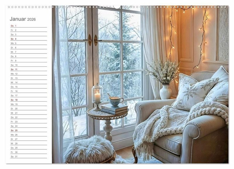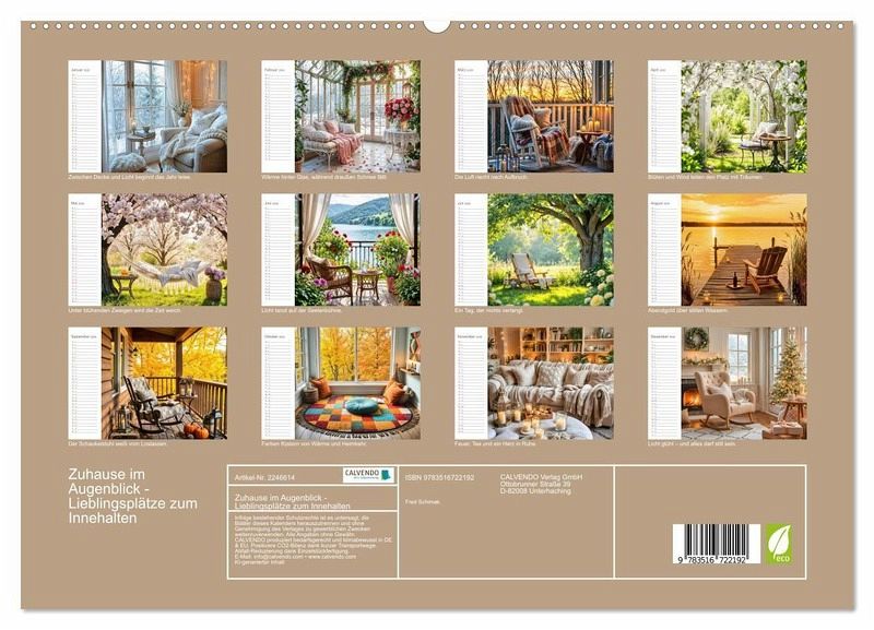 Dieser Kalender lädt ein, innezuhalten und die Schönheit persönlicher Rückzugsorte neu zu entdecken. Jeder Monat zeigt einen liebevoll gestalteten Lieblingsplatz - hell, ästhetisch und voller Ruhe. Die stimmungsvollen Motive wurden mit Hilfe von KI kunstvoll erschaffen und vereinen feminine Leichtigkeit mit einem Hauch von Träumerei. Ein visueller Atemzug für alle, die das Schöne im Stillen suchen.