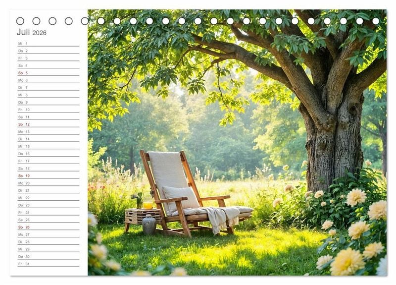 Dieser Kalender lädt ein, innezuhalten und die Schönheit persönlicher Rückzugsorte neu zu entdecken. Jeder Monat zeigt einen liebevoll gestalteten Lieblingsplatz - hell, ästhetisch und voller Ruhe. Die stimmungsvollen Motive wurden mit Hilfe von KI kunstvoll erschaffen und vereinen feminine Leichtigkeit mit einem Hauch von Träumerei. Ein visueller Atemzug für alle, die das Schöne im Stillen suchen.