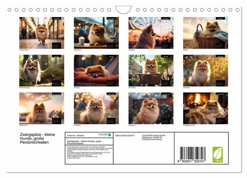 Tauchen Sie ein in die zauberhafte Welt der Zwergspitze mit unserem Kalender 'Zwergspitze - kleine Hunde, große Persönlichkeiten'.