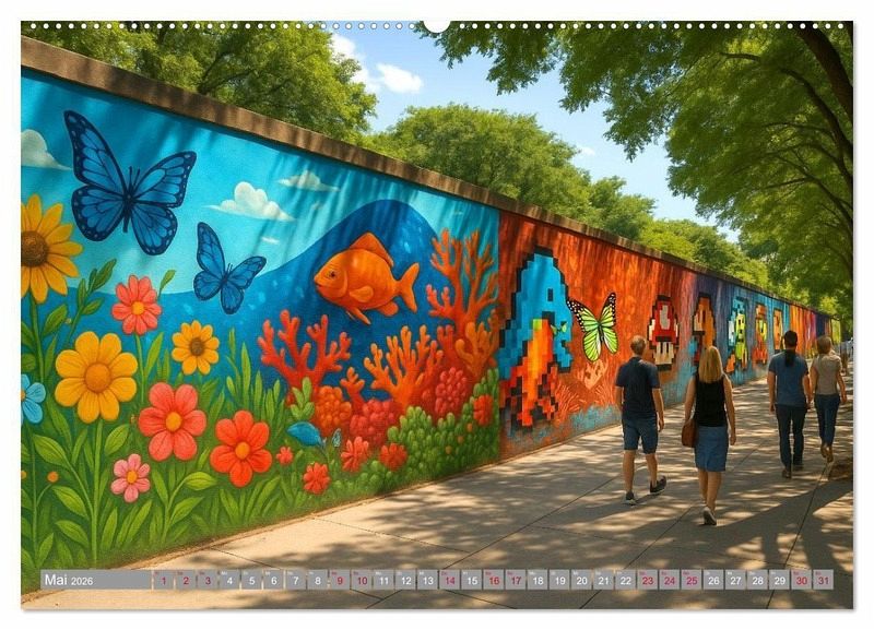 Entdecke urbane Kunst neu - von fotorealistischen Porträts bis hin zu verspielten Murals aus aller Welt. Dieser Kalender zeigt Wandkunst in ihrer schönsten Form, inspiriert von realen Orten und mit Hilfe künstlicher Intelligenz visuell zum Leben erweckt. Jedes Motiv erzählt seine eigene Geschichte und verwandelt Beton in Emotion. Ein Kunstprojekt zwischen Street, Stil und Zukunft.