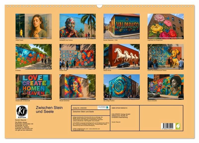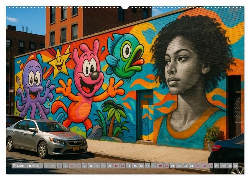 Entdecke urbane Kunst neu - von fotorealistischen Porträts bis hin zu verspielten Murals aus aller Welt. Dieser Kalender zeigt Wandkunst in ihrer schönsten Form, inspiriert von realen Orten und mit Hilfe künstlicher Intelligenz visuell zum Leben erweckt. Jedes Motiv erzählt seine eigene Geschichte und verwandelt Beton in Emotion. Ein Kunstprojekt zwischen Street, Stil und Zukunft.