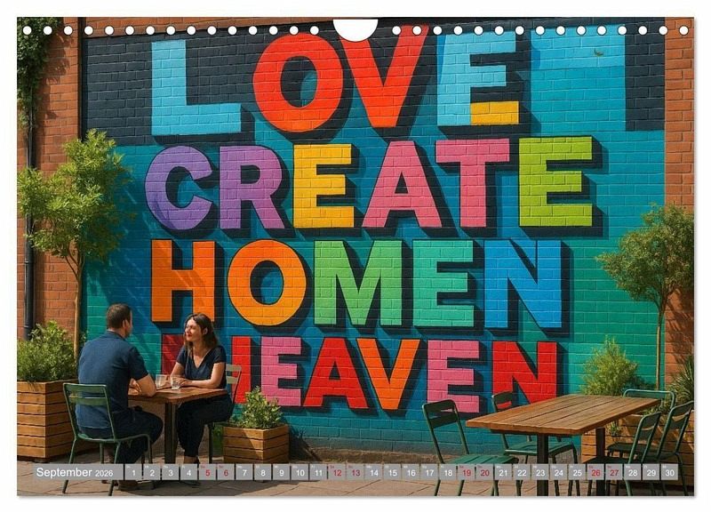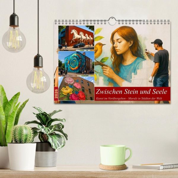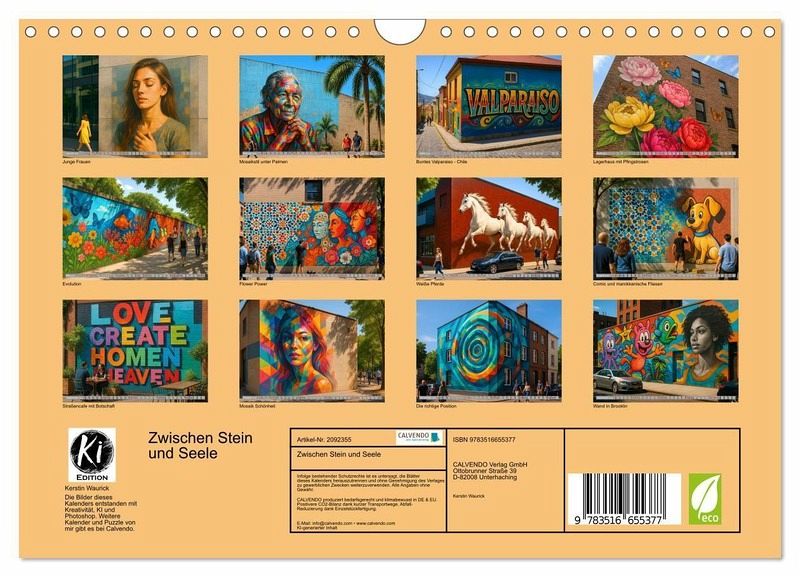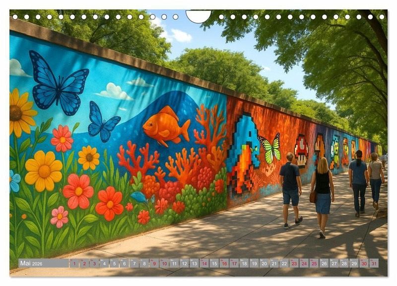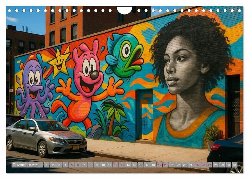 Entdecke urbane Kunst neu - von fotorealistischen Porträts bis hin zu verspielten Murals aus aller Welt. Dieser Kalender zeigt Wandkunst in ihrer schönsten Form, inspiriert von realen Orten und mit Hilfe künstlicher Intelligenz visuell zum Leben erweckt. Jedes Motiv erzählt seine eigene Geschichte und verwandelt Beton in Emotion. Ein Kunstprojekt zwischen Street, Stil und Zukunft.
