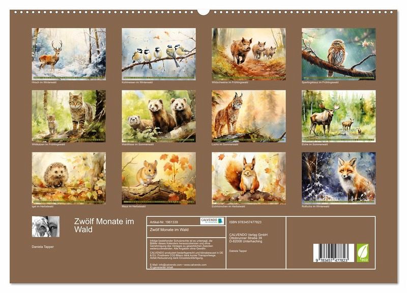 PREMIUM-LINIE - Brillanter Fotokalender mit 12 wunderschönen Motiven, Kunstdruck in Hochglanz in Museumsqualität.QUALITÄT - edle Materialien, stabile Rückwand mit 2 innovativen Einstecktaschen für eine optimale Präsentation an der Wand.NACHHALTIG - deutliche Abfallreduzierung durch bedarfsgerechte Einzelstückfertigung, umweltfreundliches FSC-zertifiziertes Papier, Produktion in Deutschland, klimabewusste Logistik.PERFEKTES GESCHENK - Kalender für Freunde und Familie, für Kinder und Erwachsene, jung und alt, zu Weihnachten, Geburtstag oder zwischendurch.Mit den Waldtieren durch die Jahreszeiten von Autor(in): Daniela Tapper