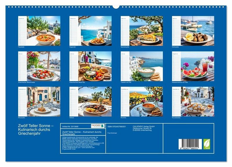 Für Küche, Wohnzimmer oder als Geschenk für alle, die Griechenland lieben - und davon träumen, jeden Monat ein kleines Stück davon zu erleben.