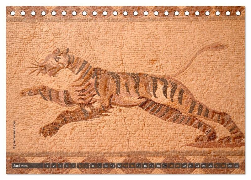 Juni: Erstaunlich gut erhaltenes Mosaik eines Tigers aus dem 3. / 4. Jh. nach Chr., 1962 in Paphos entdeckt.