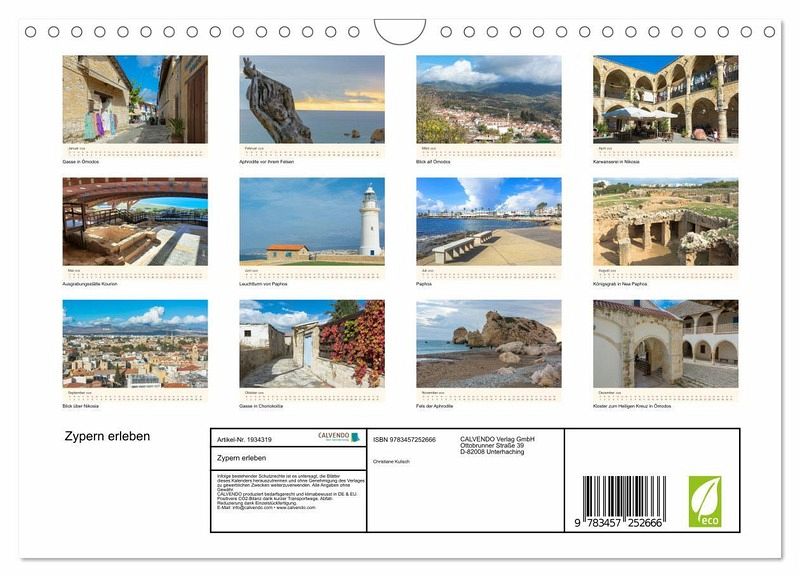 QUALITÄT - Hochwertiger Fotokalender mit 12 wunderschönen Motiven auf lichtbeständigem Bilderdruckpapier, robuste Spiralbindung mit Aufhängebügel.NACHHALTIG - deutliche Abfallreduzierung durch bedarfsgerechte Einzelstückfertigung, umweltfreundliches FSC-zertifiziertes Papier, Produktion in Deutschland, klimabewusste Logistik.PERFEKTES GESCHENK - Kalender für Freunde und Familie, für Kinder und Erwachsene, jung und alt, zu Weihnachten, Geburtstag oder zwischendurch.VIELFALT - Bildkalender in verschiedenen Formaten, z.B. DIN A5, DIN A4, DIN A3 sowie DIN A2. Ob Naturmotiv, Gemälde oder Fotos, ideal für ein persönliches Wohlfühlambiente.Zypern bietet eine phantastische Landschaft mit den Bergen und dem Meer von Autor(in): Christiane Kulisch