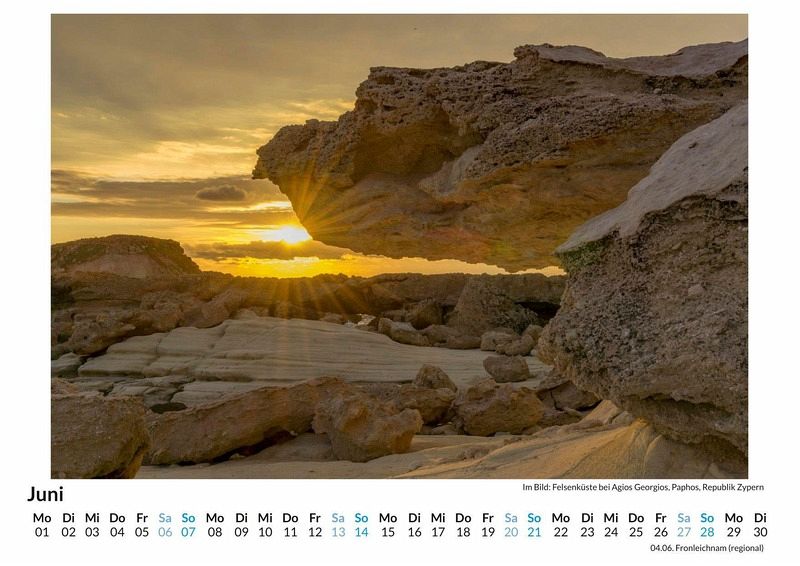 Entdecken Sie die Schönheit Zyperns jeden Monat neu! Unser hochwertiger Wandkalender entführt Sie mit 12 atemberaubenden Motiven auf eine Reise zu den malerischen Küsten, historischen Stätten und idyllischen Landschaften der Mittelmeerinsel. Gedruckt auf lichtbeständigem Bilderdruckpapier, bleiben die Farben der faszinierenden Aufnahmen das ganze Jahr über lebendig. Nachhaltigkeit liegt uns am Herzen: Der Kalender wird in Deutschland auf FSC-zertifiziertem Papier produziert. Perfekt für Ihr Zuhause oder als Geschenk - holen Sie sich ein Stück Zypern an die Wand und lassen Sie sich Monat für Monat inspirieren! Hochwertig Erleben Sie ein Jahr voller Eleganz mit unserem Premium-Fotokalender. Jedes der 12 Motive ist auf hochwertigem, lichtbeständigem Bilderdruckpapier gedruckt, um die Lebendigkeit jedes Bildes zu bewahren. Die robuste Spiralbindung gewährleistet Langlebigkeit und einfache Handhabung. Nachhaltig Unser Engagement für die Umwelt spiegelt sich in jedem Exemplar wider. Durch die Produktion auf Abruf reduzieren wir signifikant unseren Abfall. Wir verwenden ausschließlich umweltfreundliches, FSC-zertifiziertes Papier. Stolz gefertigt in Deutschland, achten wir bei unserer Logistik auf Klimaschutz, um unseren ökologischen Fußabdruck zu minimieren. Das ideale Geschenk Dieser Kalender ist das perfekte Präsent für jeden Anlass - ob Weihnachten, Geburtstage oder einfach als liebevolle Aufmerksamkeit zwischendurch. Geeignet für Freunde, Familie, Kinder und Erwachsene gleichermaßen, bereichert er jedes Zuhause mit seiner Vielfalt und Schönheit, unabhängig vom Alter der Beschenkten.