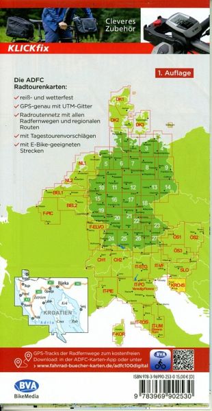 Offizielle Karte des ADFC Allgemeiner Deutscher Fahrrad-Club e.V. - die ideale Karte für Planung und Durchführung von großen Radtouren. Auf einem großen Gebiet von 130 x 160 Kilometern findet sich alles, was Radler brauchen - Routen, Sehenswürdigkeiten, Freizeitinformationen und vieles mehr. Optimale Orientierung _ übersichtlich gestaltet _ einfach zu handhaben _ alle Radfernwege und regionale Radtouren _ Anschlusskarten für ganz Deutschland und viele Nachbarländer _ wetterfestes und reißfestes Papier _ zusätzliche kostenfreie Online-Angebote: Download der gpx-Tracks der beschilderten Radrouten auf unserer website oder in unserer ADFC-Karten-App.