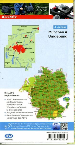 Offizielle Karte des ADFC Allgemeiner Deutscher Fahrrad-Club e.V.die ideale Karte für Planung und Durchführung von Tages- und Wochenendradtouren. Auf einem großen Gebiet von bis zu 70 x 100 Kilometern findet sich alles, was Radler brauchen.Routen, Tagestourenvorschläge, Sehenswürdigkeiten, Freizeitinformationen und vieles mehr. Optimale Orientierung _ übersichtlich gestaltet _ einfach zu handhaben _ alle beschilderten Radwege sowie die schönsten Tagestourenvorschläge des ADFC _ mit ausgewählten Straßennamen zur besseren Orientierung _ Anschlusskarten für ganz Deutschland _ wetterfestes und reißfestes Papier _ zusätzliche kostenfreie Online-Angebote: Download der gpx-Tracks der Tagestourenvorschläge auf unserer website oder in unserer ADFC-Karten-App.