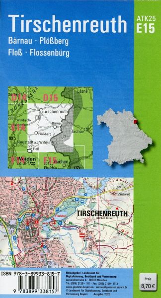 Wer es genau wissen will, greift zur ATK25. Diese Kartenserie im Maßstab 1:25000 bildet mit ihrer detaillierten Darstellung das komplette Verkehrsnetz mit allen Straßen und Wegen ab.237 Einzelblätter stellen Bayern flächendeckend dar. Ein Kartenblatt umfasst ca. 21 km x 22 km.Was bietet die ATK25?- individuelle Freizeitgestaltung mit allen ausgeschilderten Wander- und Radwanderwegen- sichere Orientierung auch abseits der markierten Routen- umfangreiches Spektrum an Freizeiteinrichtungen und Sehenswürdigkeiten- anschauliche Wiedergabe der GeländeformenDas Kartenblatt ATK25-E15 enthält u.a. folgende Orte: Bärnau, Plößberg, Floß, Flossenbürg, Stiftland, Oberpfälzer Wald