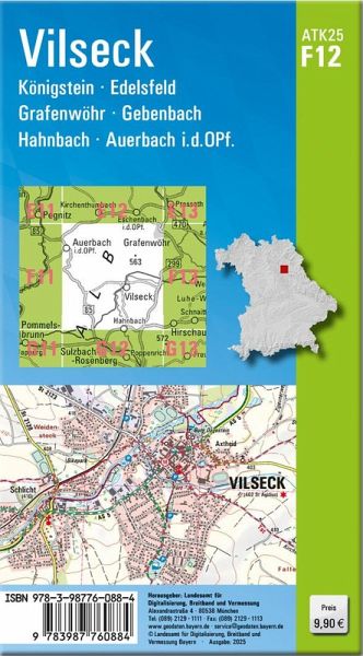 Wer es genau wissen will, greift zur ATK25. Diese Kartenserie im Maßstab 1:25000 bildet mit ihrer detaillierten Darstellung das komplette Verkehrsnetz mit allen Straßen und Wegen ab.237 Einzelblätter stellen Bayern flächendeckend dar. Ein Kartenblatt umfasst ca. 21 km x 22 km.Was bietet die ATK25?- individuelle Freizeitgestaltung mit allen ausgeschilderten Wander- und Radwanderwegen- sichere Orientierung auch abseits der markierten Routen- umfangreiches Spektrum an Freizeiteinrichtungen und Sehenswürdigkeiten- anschauliche Wiedergabe der GeländeformenKartenblatt ATK25-F12 Vilseck:REGION: Oberpfalz, Fränkische AlbORTE: Vilseck, Königstein, Edelsfeld, Grafenwöhr, Gebenbach, Hahnbach, Auerbach i.d.OPf., Freihung
