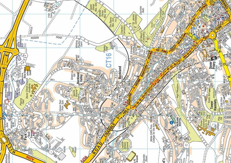 Navigate your way around Dover with detailed street maps from A-Z This up-to-date, folded A-Z street map includes all of the 1,500 streets in and around Dover as well as: * Postcode districts, one-way streets and car parks * Places of interest * On the reverse side there is a handy index to streets, places of interest, place and area names, park and ride sites, national rail stations, hospitals and hospices Detailed coverage of an area extending from Napchester in the north to the harbour in the south, and from beyond Jubilee Way to the east and Kearsney in the west. With its clear mapping at a scale of 5.5 inches to 1 mile, this is the perfect reference map for finding your way around Dover.