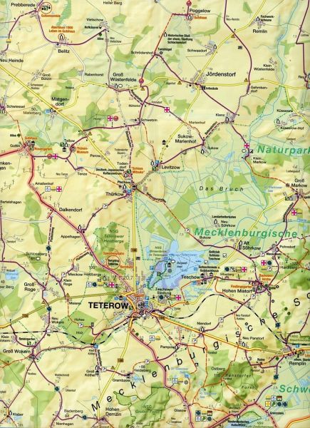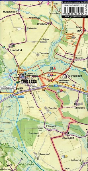 Die Karte stellt die reizvollen Flusslandschaften von Recknitz, Trebel und Warbel im Hinterland der Ostsee dar. Sanfte Auen, Sumpf- und Torflandschaften wechseln sich ab mit weiten Feld- und Wiesenflächen als auch mit Buchen- und Mischwäldern. Über ein gut ausgebautes Radwegenetz kann der Radler auch interessanten Städte wie z. B. die Bernsteinstadt Ribnitz-Damgarten, das Solbad Bad Sülze, Marlow mit seinem Vogelpark und die Barlach-Stadt Güstrow erkunden.