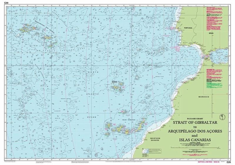 A passage chart designed for planning and navigating across the North Atlantic between Gibraltar, the Azores and the Canary Islands.