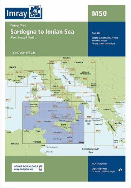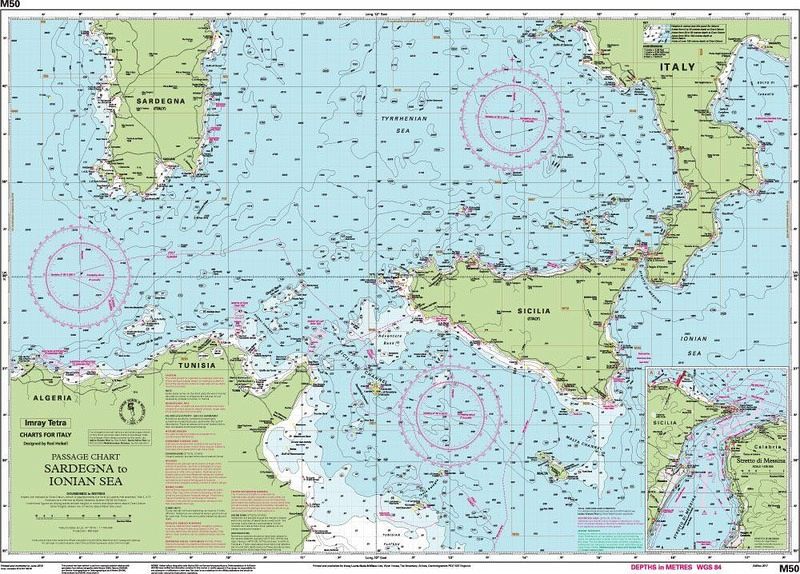Plans included:Stretto di Messina (1:125 000)On this 2017 edition the two new Traffic Separation Schemes off the Algerian coast are shown. The chart specification has been improved to show coloured light flashes. There has been general updating throughout.