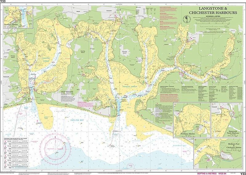 A large scale chart covering this popular area off the Solent, including Langstone and Chichester Harbours, Hayling Island and yacht harbours and marinas.
