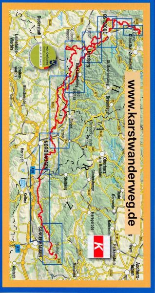 Von Bad Grund in Niedersachsen bis Pölsfeld in der Nähe von Sangerhausen in Sachsen-Anhalt reihen sich am südlichen Harzrand Karsterscheinungen perlschnurartig aneinander. Höhlen, Erdfälle und Dolinen, Karstquellen, Bachschwinden und Flussversinkungen, Karstkegel, Schlotten, geologische Orgeln, Felsen und weiße Wände gehen auf die gesteinsauflösende Wirkung des Wassers zurück, gebildet aus dem Gips des Südharzes. Der Karstwanderweg erschließt mit einer Länge von 248 km diese einzigartige Naturlandschaft.Der Karstwanderweg ist seit 2011 "Qualitätsweg Wanderbares Deutschland". Er ist damit zusammen mit dem Harzer Hexen-Stieg der zweite zertifizierte Wanderweg im Harz. Aber auch der Einzige, der mit Niedersachsen, Thüringen und Sachsen-Anhalt durch alle drei Bundesländer des Harzes führt.Der Karstwanderweg berührt geschützte Natur- und Kulturdenkmale und quert Naturschutzgebiete. Er soll über die ökologischen Zusammenhänge in der Natur des Südharzes aufklären.In enger Zusammenarbeitmit der Arbeitsgruppe Karstwanderweg wurde die 3. Ausgabe des Wanderleporello "Karstwanderweg im Südharz" überarbeitet und neu veröffentlicht. Das ca. 2,70 m lange zieharmonikaartige auf Taschenformat gefaltete Leporello stellt den gesamten Karstwanderweg von Sangerhausen bis Osterode vor.Für die auf der Karte angebrachte Kilometrierung wurde Pölsfeld als Startpunkt angenommen. In Gudersleben teilt sich der Karstwanderweg und führt auf einer Südroute über Pöhlde nach Förste und dann auf einer Nordroute über Osterode wieder zurück nach Gudersleben. Zusätzlich wurde die Anbindung des Karstwanderweges vom HöhlenErlebnisZentrum in Bad Grund nach Förste in die Kartographie aufgenommen. Auf eine Einteilung des Karstwanderweges in Etappen wurde verzichtet. Der Karstwanderweg kann aus beiden Richtungen erkundet werden. Zusätzlich wurden die Rundwanderwege am Karstwanderweg dargestellt die eine Unterteilung des Weges in kleinere Rundtouren ermöglicht. Weiterhin erläutert die vorliegende Publikation die geologischen Besonderheiten des Karstwanderweges mit Text und Bild.
