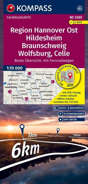 Die Fahrradkarte Region Hannover Ost, Hildesheim, Braunschweig, Wolfsburg, Celle von Kompass im Maßstab 1:70.000 bietet einen guten Mix aus Detailgrad und Abdeckung der Region. Sie beinhaltet alles, was man für eine gute Planung und Orientierung einer Fahrradtour benötigt. Das reiß- und wetterfeste Material hält jedem Wetter stand und begleitet dich viele Jahre.