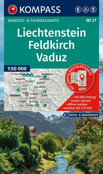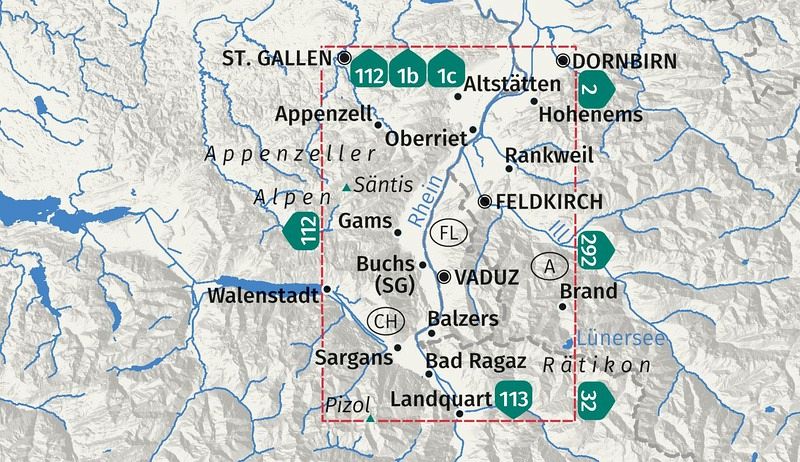 Ausstattung der Wanderkarte Liechtenstein, Feldkirch, Vaduz: