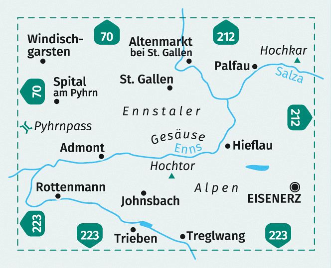 Ausstattung der Wanderkarte Gesäuse, Ennstaler Alpen, Pyhrnpass, Eisenerz:
