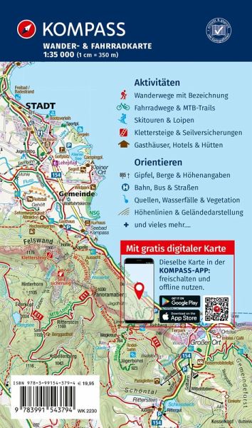 4 Karten: große Abdeckung durch mehrere Wanderkarten im Set Maßstab 1:35.000: 1cm auf der Wanderkarte entspricht 350m in der Natur Kartenausschnitt auch offline in der Kompass-Wanderkarten-App nutzbar