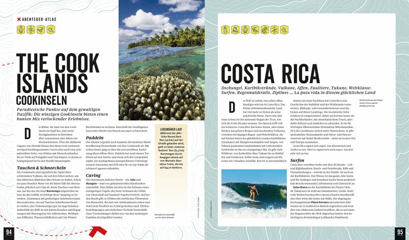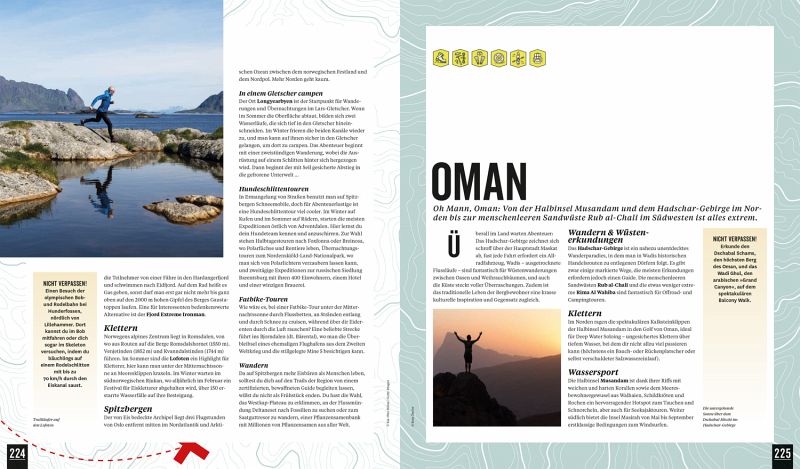 Am Ende des Buches befindet sich dann noch einmal eine Aufstellung der Aktivitäten bzw. Abenteuer mit den Ländern in denen diese geboten werden.