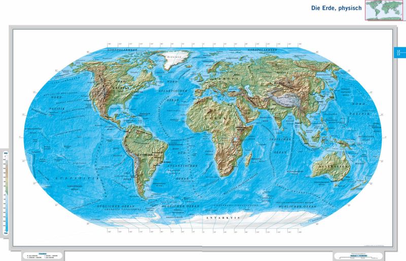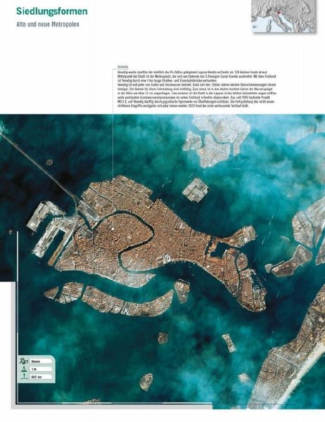 Ein vorgelagerter thematischer Teil beschäftigt sich mit der Erde als Teil des Universums und als Lebensraum. Ein weiterer Abschnitt zeigt eindrückliche Satellitenaufnahmen. Das Länderlexikon liefert aktuelle Daten und Fakten zu allen Staaten unserer Erde. Mit Auflistung und Beschreibung aller aktuellen UNESCO-Welterbestätten und ergänzten Nationalparks in den europäischen Karten.