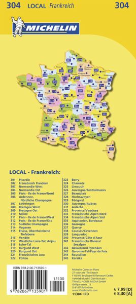 Michelin Localkarte für das Gebiet Normandie Ost im Maßstab 1:150.000.
