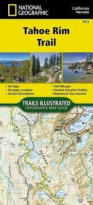 - Waterproof - Tear-Resistant - Topographic Map Conceived in 1978 and completed in 2001, the 175-mile Tahoe Rim Trail (TRT) circumnavigates the beautiful Lake Tahoe Basin and traverses some of the most spectacular scenery in the Sierra Nevada and Carson Ranges. For more than 50 miles the TRT coincides with the Pacific Crest Trail (PCT), a national scenic trail extending from Canada to Mexico through the western United States. The lowest point along the TRT is approximately 6,200 feet above sea level where the Truckee River enters Lake Tahoe; with the highest point at Relay Peak, 10,398 feet. While the average segment elevation gain is 5,400 feet, the total elevation gain of the entire trail is greater than 40,000 feet. The Topographic Map Guide is arranged for clockwise travel around the Tahoe Rim Trail starting at Tahoe City. Each map page has a detailed trail profile that shows the elevation changes you will encounter. The TRT is highlighted and centered on each page so you can easily track your progress. The Topographic Map Guide also includes detailed information about the eight standard sections of the TRT, each section is from 15 to 30 miles and covers about two pages of the map guide. More convenient and easier to use than folded maps, but just as compact and lightweight, National Geographic's Topographic Map Guide booklets are printed on "Backcountry Tough" waterproof, tear-resistant paper with stainless steel staples. A full UTM grid is printed on the map to aid with GPS navigation. * Map Scale = 1:63,360 * Folded Size = 4.25" x 9.38"