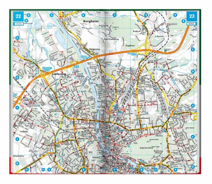 Neben der detaillierten Autokarte 1:150.000 bietet der Große Reise-Atlas Österreich eigene Karten für die Gebiete um München, Brünn, Bozen, Budweis und das Drautal. Diese erweiterte Ausgabe beschreibt zudem 100 sehenswerte Freizeitziele, bietet ein Verzeichnis aller Camping- und Stellplätze und gibt Kurzinfos zu 14 Radrouten, darunter etwa den Donau-Radweg und Tauernradweg.Auto- und Freizeitkarte Österreich 1:150.000Camping & Stellplätze100 Freizeitziele RadwegePlanungskarte ÖsterreichAutokarte Europa 1:3,5 Mio.OrtsregisterCitypläne der LandeshauptstädteDeutsch / Englisch