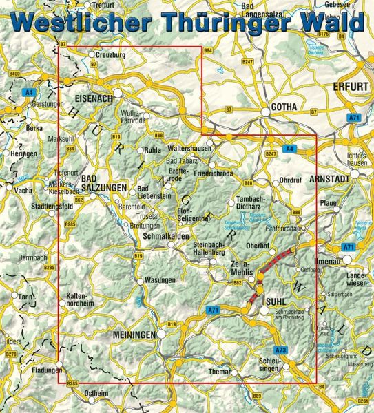 Das von der Funke Mediengruppe initiierte Projekt "Touringen entdecken" hat mit 430 Stempelstellen die schönsten Wander- und Ausflugsziele erfasst. Auf über 122 Wandertouren in ganz Thüringen können diese Stempelstellen in unterschiedlicher Anzahl erwandert werden. Folge den Touringen-Stempeln und Du bist automatisch auf den schönsten Wanderwegen Thüringens unterwegs. Deine Anstrengungen beim Erwandern der Stempelstellen in Thüringen werden mit 12 leistungsbezogenen Abzeichen belohnt.Die neue Rad- und Wanderkarte "Westlicher Thüringer Wald" erfasst die Region des Thüringer Waldes von Creuzburg - Eisenach - Waltershausen - Ohrdruf - Bad Salzungen - Schmalkalden und Suhl bis Fladungen - Meiningen - Themar - Schleusingen und stellt das Rad- und Wanderwegenetz mit den Stempelstellen "Touringen entdecken" im übersichtlichen Maßstab 1:50 000 vor. Die reiß- und wetterfeste Karte schließt nördlich an den Nationalpark Hainich und westlich an das Biosphärenreservat Rhön an und ist ideal zum entdecken der Region und um die Stempelstellen der Region zu erwandern. Auf der Karte sind 155 Stempelstellen und 44 Wandertouren zum erwandern der Touringen Stempel dargestellt.Eine Übersicht der Stempelstellen mit dem Register sowie den empfohlenen Wandertouren erleichtert die Orientierung und das Auffinden der Stempelstellen. Zusätzlich visualisiert eine Geländeschummerung das Mittelgebirge und ein UTM-Gitter ermöglicht die Nutzung eines GPS-Gerätes.